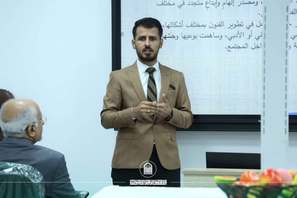 برعاية السيدة رئيسة الجامعة أ. د. زينب الملا السلطاني، وبإشراف السيدة عميدة كلية التربية أ.د. إيمان سمير بهية، نظّم قسم التربية الفنية، بالتعاون مع شعبة شؤون المرأة ومركز التعليم المستمر،ندوة علمية بعنوان “المرأة ودورها في تعزيز الثقافة الفنية”، قدّمها التدريسي م.م. علي حسين